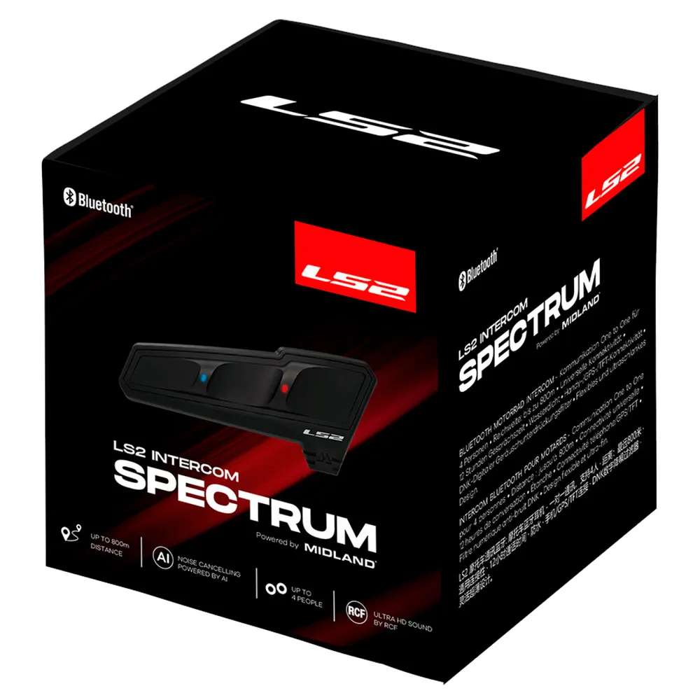 Met de LS2 Intercom Spectrum geniet je onderweg van de ultieme communicatie-ervaring. Dit innovatieve Bluetooth communicatiesysteem, ontwikkeld in samenwerking met Midland speciaal voor LS2 Helmen, levert superieur geluid dankzij hoogwaardige speakers van RCF.