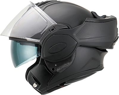 Naadloze overgang tussen integraalhelm en open-gezichtshelm; het voorste gedeelte kan volledig worden teruggevouwen voor een onbelemmerd gezichtsveld en uitzonderlijk comfort.